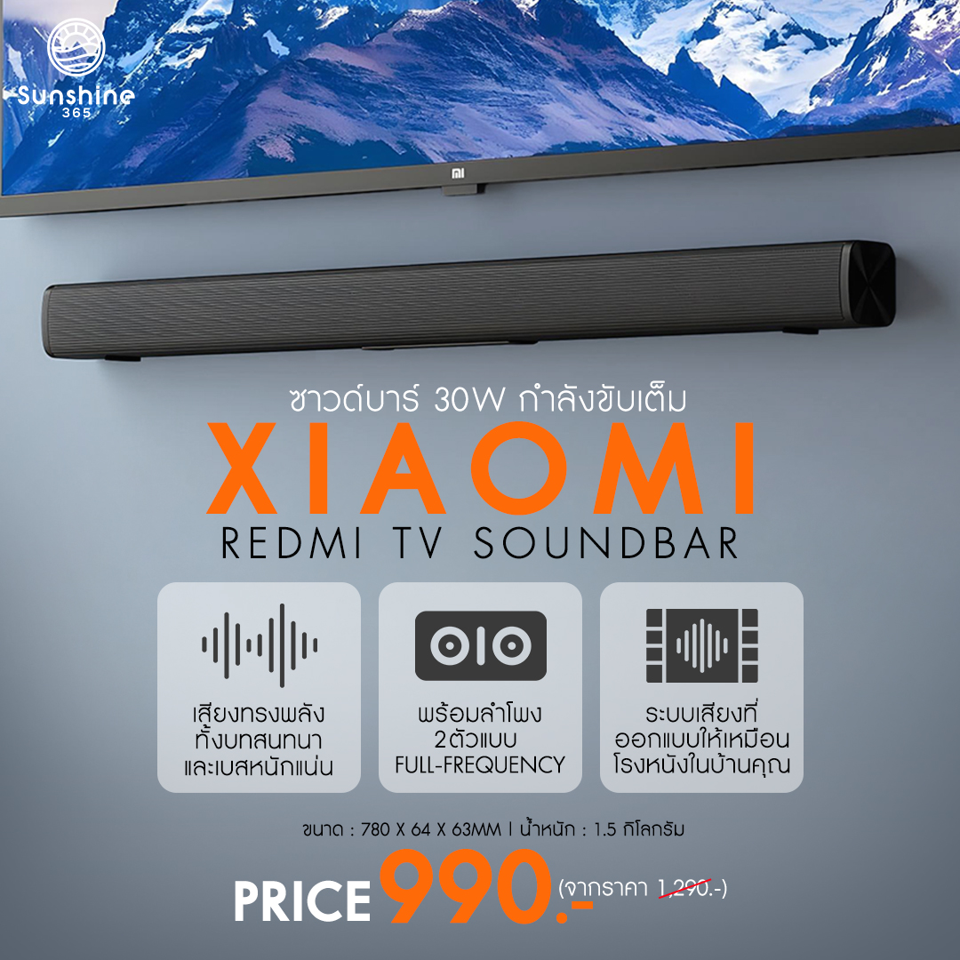 Redmi TV Soundbar เป็นซาวด์บาร์ที่ออกแบบมาเพื่อยกระดับประสบการณ์การรับชมทีวีให้สมจริงและเต็มอิ่มด้วยเสียงกังวานทรงพลัง ด้วยกำลังขับ 30W ทำให้เสียงบทสนทนาชัดเจนและเบสหนักแน่น เสียงประกอบภาพยนตร์ ซีรีส์ หรือเกม จึงเต็มไปด้วยรายละเอียดและมิติที่ชัดเจน